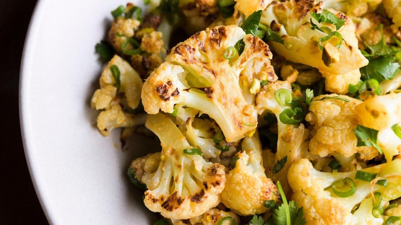 Miso-gochujang pulled pork; miso-ginger dressing; roasted cauliflower with miso glaze.